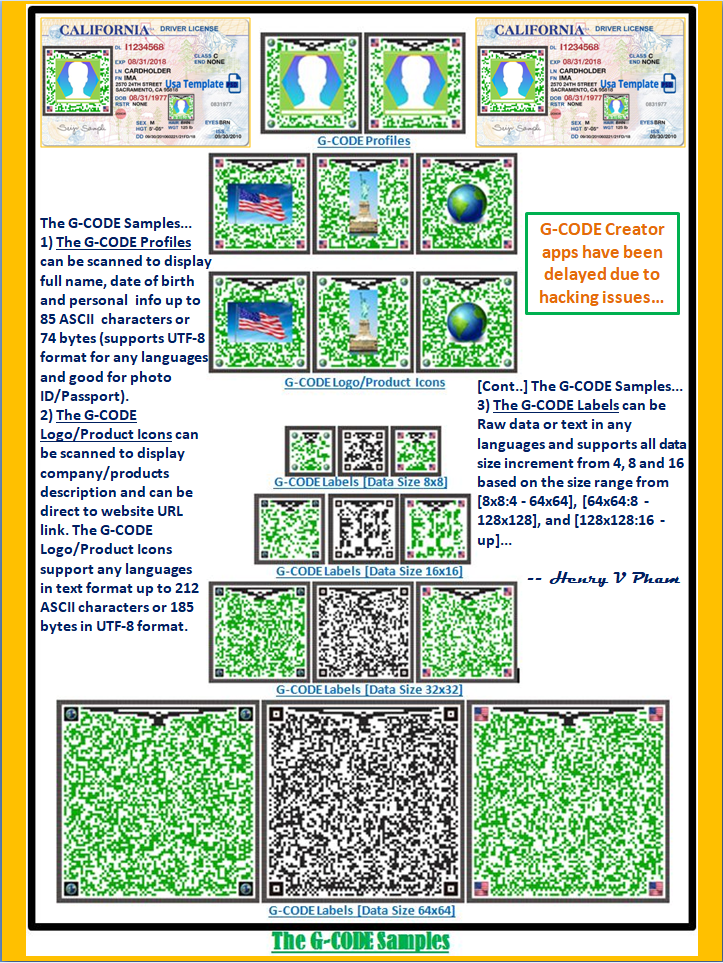 is the Java application which uses to generate G-CODE Labels, G-CODE Product Icons, G-CODE Logos and G-CODE Profiles. This application is on hold for Copyright© Protection and Secured IP purposes to protect from hacking while waiting for International Patent Certification of the G-CODE Invention...