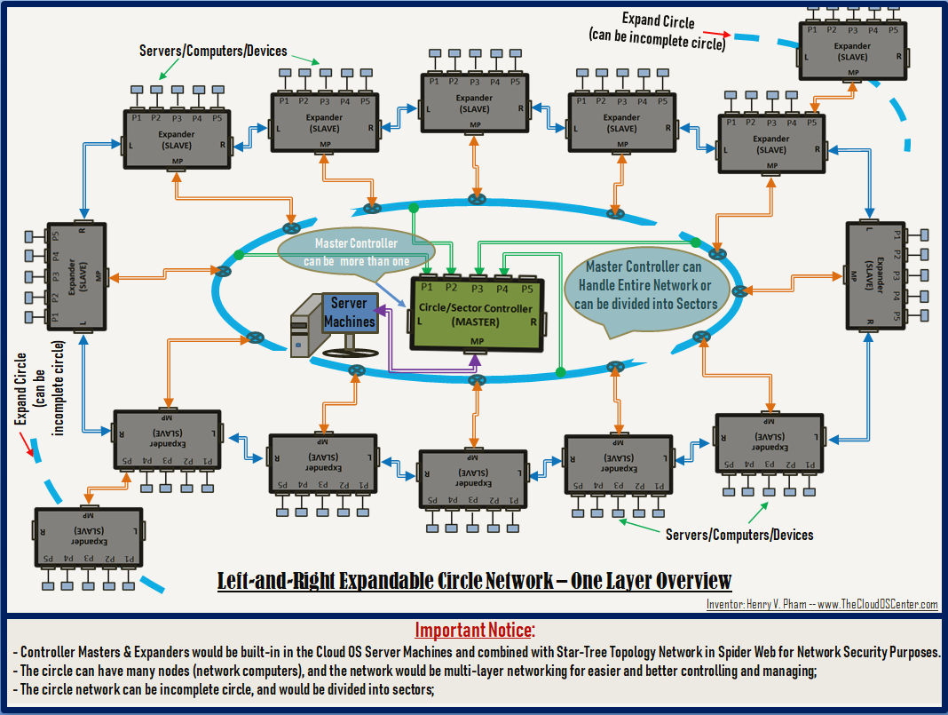 [Note that the Cloud OS Network will use (Star-Tree/1-to-5) or Hexacell Network in combination with this Circle Network for better managing, expanding with Self-Manage & Self-Control Networking or Webbing...]