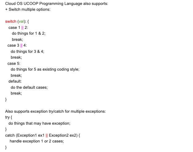 Cloud OS: UCOOP Programming Supports Multiple Switch Cases + Exceptions (would omit break keyword)